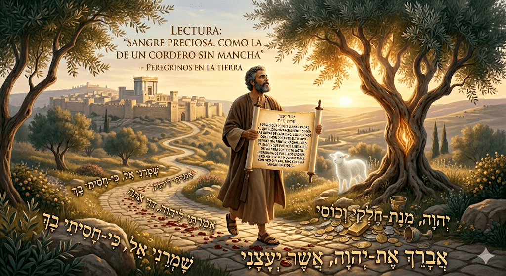 Queridos hermanos:Puesto que podéis llamar Padre al que juzga imparcialmente según las obras de cada uno, comportaos con temor durante el tiempo de vuestra peregrinación, pues ya sabéis que fuisteis liberados de vuestra conducta inútil, heredada de vuestros padres, pero no con algo corruptible, con oro o plata, sino con una sangre preciosa, como la de un cordero sin defecto y sin mancha, Cristo, previsto ya antes de la creación del mundo y manifestado en los últimos tiempos por vosotros, que, por medio de él, creéis en Dios, que lo resucitó de entre los muertos y le dio gloria, de manera que vuestra fe y vuestra esperanza estén puestas en Dios.